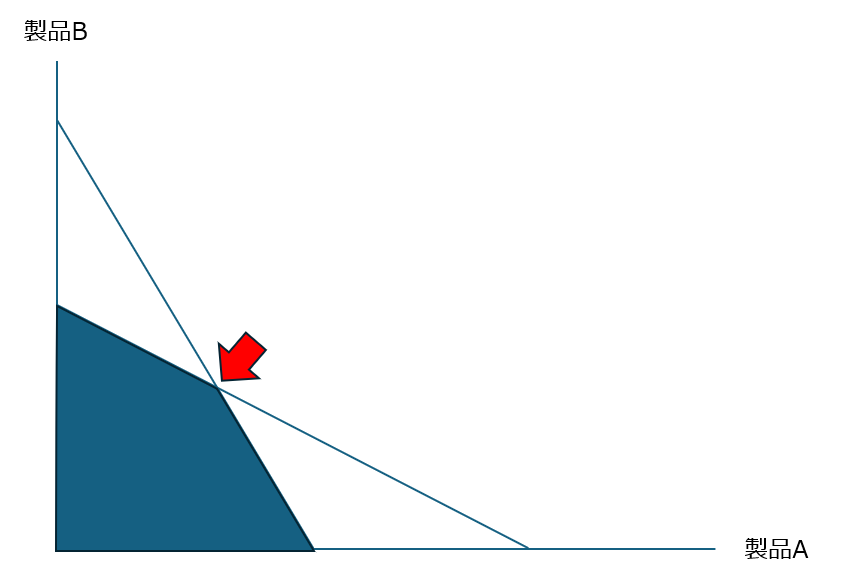 - 以上より、同じ時間をかけて生産するなら製品Aに全振りしたほうが多くの利益を得られることがわかる